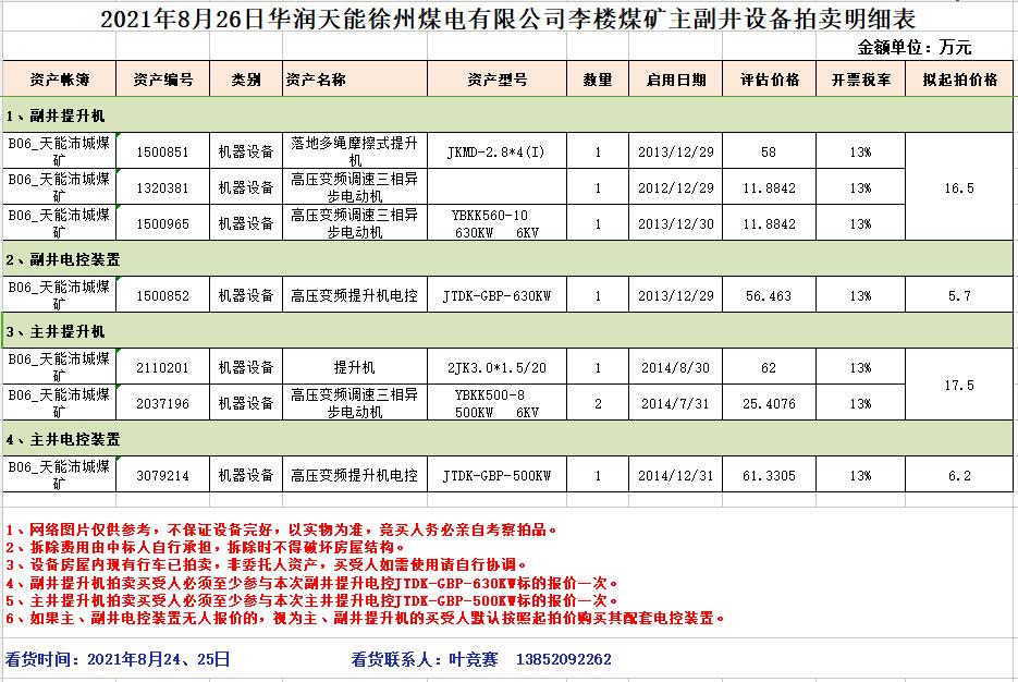 2、華潤天能公司李樓煤礦主副井提升機及電控裝置。(保證金5萬元)