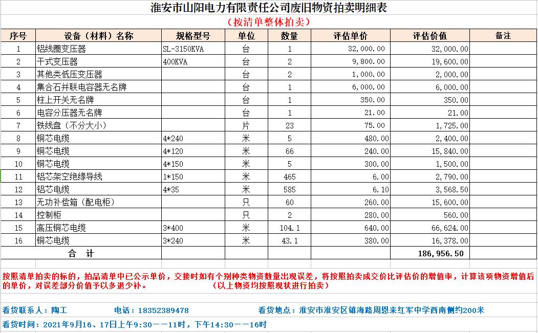 關(guān)注微信公眾號受委托,我公司定于2021年9月18日10時(shí)(網(wǎng)絡(luò)延時(shí)除外)在中拍平臺以網(wǎng)絡(luò)競拍的方式公開拍賣以下單位電力物資,主要包含:變壓器、開關(guān)柜、配電柜、控制柜及電纜等物資。
